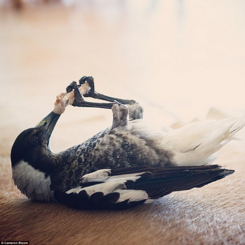 Bloom ailesi 2013 yılında birkaç haftalık bir yavru saksağanı annesi tarafından terk edilmiş halde sahilde buluyor. Adını Penguen koydukları kuşu özenle tedavi edip besliyorlar. Penguen de onları aile olarak kabul edip beraber yaşamaya başlıyor. Çocuklarla çok iyi anlaşan kuşumuz hakkında ailenin babası "onu köpeğimiz olarak görüyoruz" diye konuşuyor. Bu arada not düşelim: Penguen ismini kuşumuzun penguen gibi siyah beyaz renklere sahip olmasından dolayı koymuşlar :)