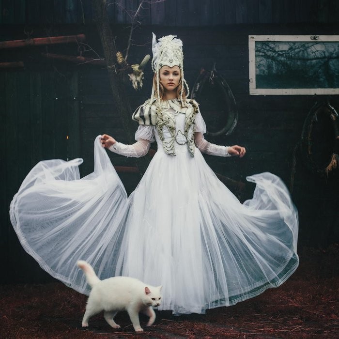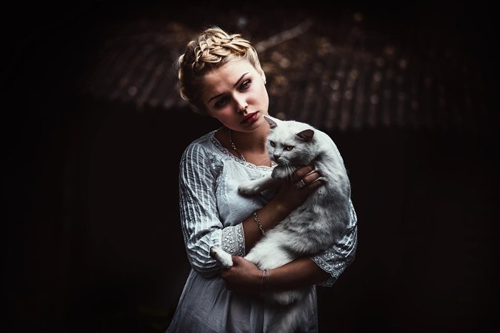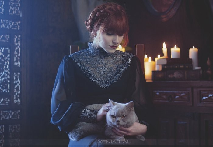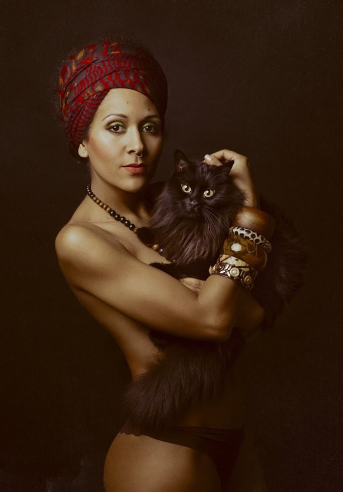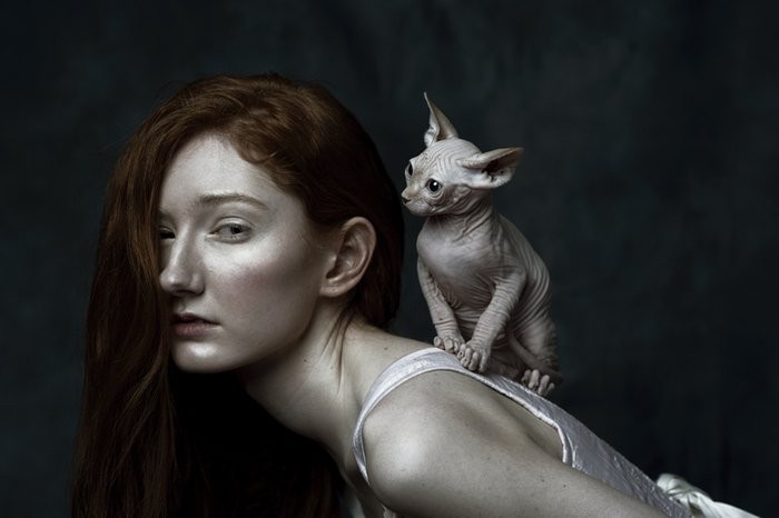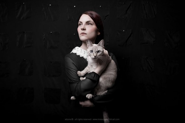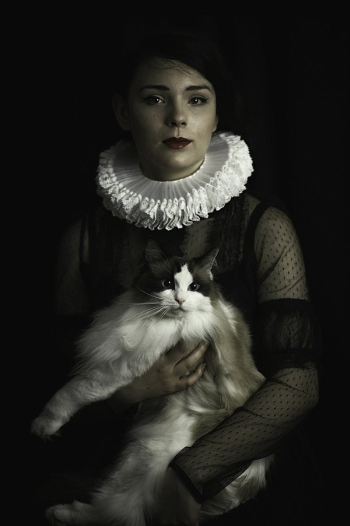 Fotoğraflarda Rönesans döneminden esinlenerek çalışılmış. Kadınlar ve kediler.. Sanki bir Rönesans tablosundan fırlamış gibi.